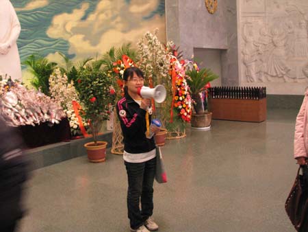 主题讲解过后,纪念活动进入第二个环节。六名团员继续为馆内游客进行循环讲解之余,联合支部的其他团员承担了馆内的进行义务疏导工作。当日,来周邓纪念馆悼念两位伟人的游客非常多,无形之中加重了馆内的人流疏导工作量。所以,支部团员的义务疏导是非常必要的,团员的热情也受到了工作人员的认可和欢迎。在馆内工作人员的帮助下,团员们很快熟悉了馆内的地形并迅速进入工作状态。他们有的在正门入口,为游客检票;有的在展厅入口,指引游客进入馆内;有的在楼梯口,指引游客注意脚下台阶;有的在转口处,为游客指引展厅位置;还有的在出口处,指引出口,防止游客回流。一个上午忙下来,同学们辛苦的工作着,没有怨言,并从这份工作中体味着一份特殊的快乐。