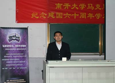 (通讯员:宁静 胡志辉)2009 1120日下午,马克思主义教育学院举办“庆祝新中国成立六十年周年学术研讨会暨学术节开幕”活动,党委书记平章起主持,全院100余名师生参加了此次活动。