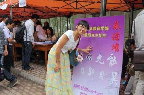 与此同时,在为每位新生递上追梦接力棒的同时,学院在迎新现场构筑了一面公能承诺墙,新生们用照片将允公允能日新月异的南开校训贴满的同时也象征着新生对南开、对公能精神的庄严承诺,承诺做一名合格的南开研究生,严守学术诚信,立志追求真理。