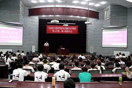 913,马克思主义教育学院2013级新生开学典礼在伯岺楼一楼报告厅举行。学院领导、各教研部教师、行政管理老师和学院2013级全体本硕博新生参加了开学典礼。
