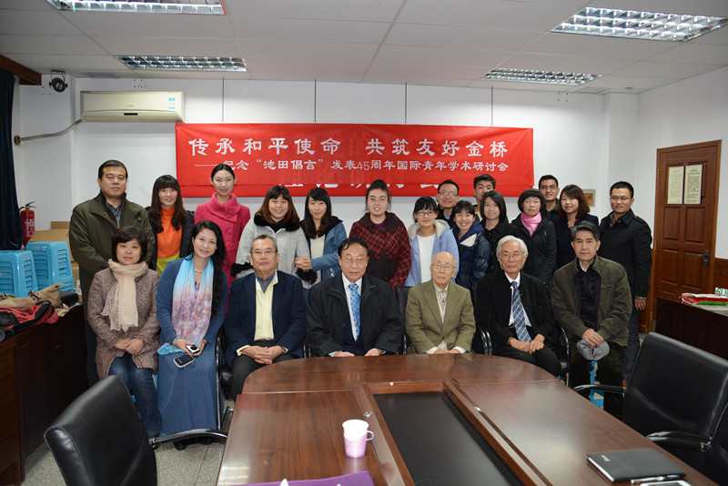2013年11月18日,松本洋一郎先生一行做客周恩来·池田大作研究会,与周池会指导教师及骨干畅谈中日和平友好思想。原周恩来邓颖超纪念馆馆长王绪周,江苏省首届特聘教授、南京师范大学博导林敏洁教授,东京学芸大学名誉教授鹫山恭彦,AOD日本有限公司董事部代表高桥正,天津泥人张工作室主任傅长圣以及周池会的指导教师、骨干们共同参加了本次交流会。
