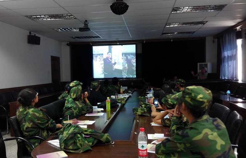 随后,新生们就军训生活谈了自己的感受。新生王惠谈到,“军训是苦中有乐的,尤其是舍友给了我很大帮助。” 新生寇静谈到,“军训让自己学会了‘坚持’的精神,每当自己感觉不行时都是咬咬牙挺过来的,相信这种精神能帮助自己克服大学中的很多困难。” 新生吴欣瑶谈到,“军训增强了自己的时间观念,懂得了纪律的重要性,学会了担当。”