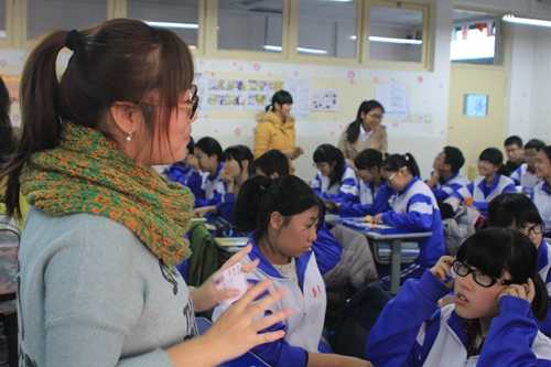 在嘹亮激昂的《光荣啊,中国共青团》歌声中,主题团日活动正式拉开了序幕。随后,全体成员乘地铁前往新华中学,随行的还有团委组织部考评中心的两位考察员。团支部21名成员分成两个小组,分别进入新华中学国际部高一年级一班、二班开展活动。