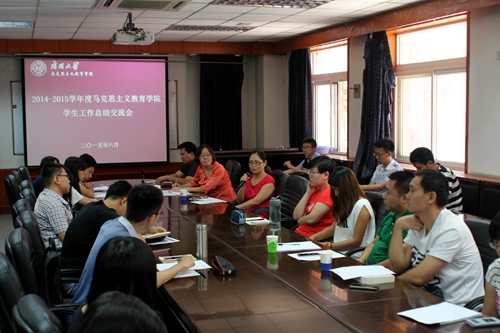7月1日上午,马克思主义教育学院在范孙楼114室召开了2014-2015年度马克思主义教育学院学生工作总结交流会。学院党委书记邢丽芳、本科生研究生班导师以及辅导员出席,学院党委副书记副院长马亚男主持了此次交流会。