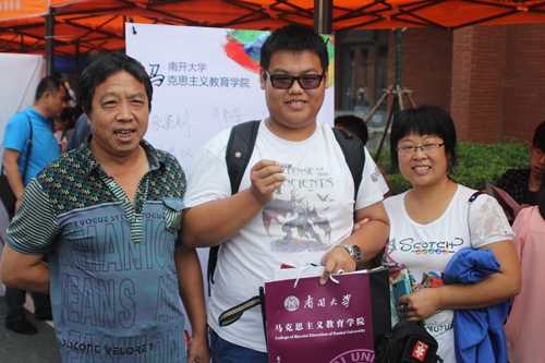 留影大学第一照、为新生佩戴南开校徽、师生温馨解读和提示、留言签名板…,都能让新生感到学院师生的喜气洋洋。新生张鉴钊感慨道,“学姐学长和老师们的热情接待让我们不再感到紧张,更让我感受到了马列大家庭的温暖和作为南开人的骄傲。”。据悉,从8月初拿到新生联系方式开始,学院精心安排,通过电话、QQ、微信、短信等方式进行家访,了解新生家庭基本情况,并为新生推介南开故事、资助政策、迎新安排以及乘车路线等内容,让学生和家长未到南开先知南开事,并关心的问题进行解疑答惑。同时,院学生会和团委也通过多种渠道就生活指导、教师授课风格、如何防骗等内容与新生进行了沟通,让新生在入学之前就感受到马列家的温暖。
