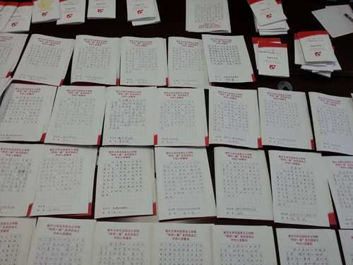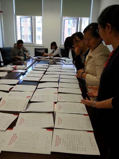 会后,由学院党委书记、副书记和各支部书记组成的评审团对学院党员上交的手抄入党誓词书法作品和习近平总书记系列讲话精神学习抄录本进行了评选。在两百多份作品中评选出特别奖两名,一、二、三等奖和优秀奖若干,随后会将优秀作品以展板形式进行展出。