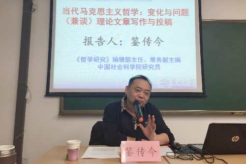最后,杨谦教授对鉴传今研究员的报告作了总结。她指出,鉴研究员的报告内容之充分,信息量和学术含量之高是少见的,他在长达3个多小时的时间内,用鲜活生动的语言为我们介绍了广泛而又深刻的马克思哲学的重大问题,也给了我们深刻的启示,鼓励我们扎实刻苦的研究马克思经典文本,认真做好“大学术”而不是局限于“小学问”,“反思”与“超越”并举,真正做到用马克思哲学来回应当今中国的重大理论和实践问题,为马克思主义学科以及马克思主义本身的发展做出贡献。