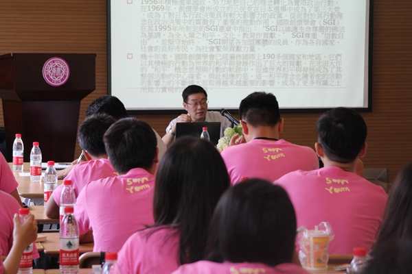 专家报告会由学院团委书记、本科生辅导员陈永刚主持。温宪元教授与崔学森副教授分别以“池田大作的和平思想:从概念到行动”和“哲学维度的对话”为主题为来自海峡两岸的同学们带来了一场别开生面的报告。温宪元教授以池田大作的和平思想为主题,分别介绍了和平思想的来源与发展、和平思想的概念与内核以及和平思想的当代实践,通过精彩的讲述与触目惊心的图片和数据使同学们深刻感受到了战争给世界人们所带来的苦难,体会到了和平的来之不易,对池田大作的和平主义思想有了更为深刻的理解。崔学森副教授以“对话”作为主题,以池田大作著作一贯的“对话体”为切入,深入浅出,从哲学的高度为同学们诠释了“对话”对于人类文明发展与大同社会达成的重要意义。