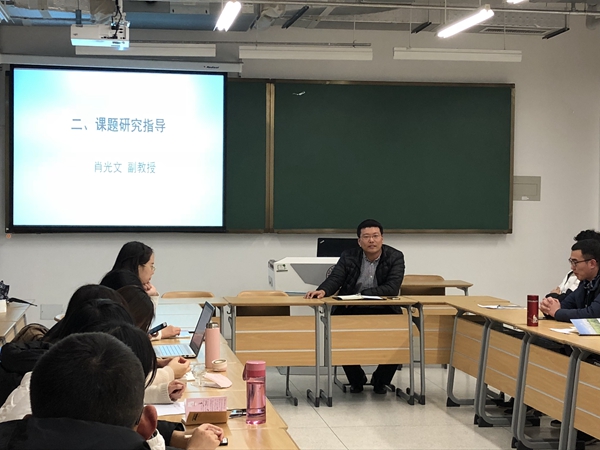 肖光文老师从选题和写作两大方面和同学们进行了交流。他就如何选好题目谈到,选题大小要适中,题目要在大的背景下,聚焦到一点,从小的方面进行切入,这样能作出更有深度的研究;选题还有要实际价值和当代意义,题目的选择不是盲目的,要从现实问题出发,瞄准现实;选题还有“三新”,新角度、新材料和新理论。此外,肖老师还向同学们介绍了几种常用的研究范式,如归纳法和演绎法,并强调了论文写作时需要注意立场、框架和写作规范等几个问题。