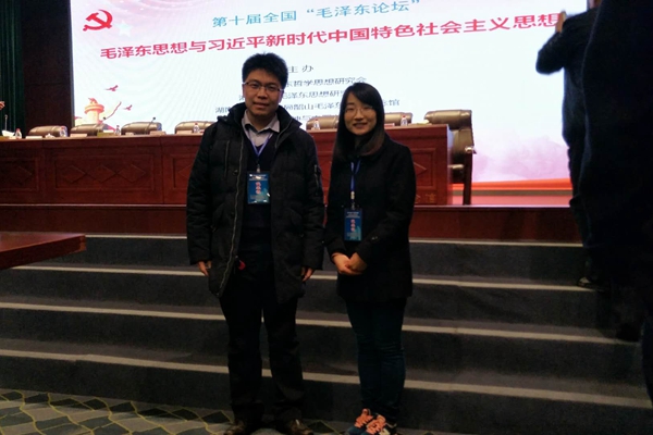 在毛泽东同志诞辰124周年之际,12月23日,由全国毛泽东哲学思想研究会、湘潭大学毛泽东思想研究中心、湖南省韶山管理局韶山毛泽东同志纪念馆、中国深圳民族精神与中国发展研究中心联合主办的第十届全国“毛泽东论坛”——毛泽东思想与习近平新时代中国特色社会主义思想在韶山召开。来自中共中央党校、中央文献研究室、中国社会科学院、山东社会科学院、湖南省社会科学院、湘潭大学、武汉大学、英国上市公司365、华中科技大学、湖南大学等国内研究机构和高校的近100位专家学者,围绕会议主题开展了研讨。我院党委副书记、副院长刘一博老师、2016级中共党史专业硕士研究生孙艳美应邀参加此次学术论坛。