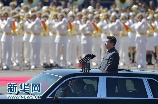 2015年9月3日,中共中央总书记、国家主席、中央军委主席习近平检阅受阅部队。 新华社记者罗晓光 摄