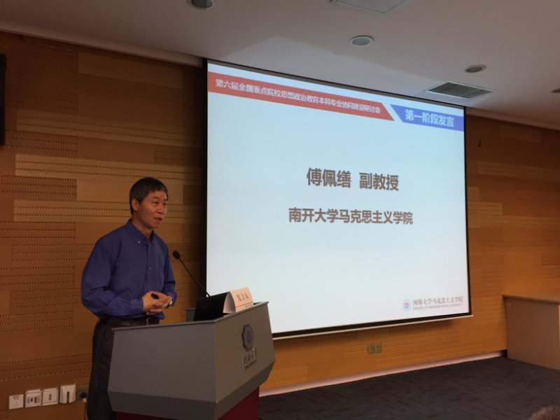 我院副院长索海军、思想政治教育系主任傅佩缮、教师薛晓斌、刘春雪、常宴会、本科教学秘书楚恒叶受邀参加研讨会。傅佩缮老师以“助力国家思想文化建设、服务学生自由全面发展”为题做了精彩的大会发言。我院教师认真听取大会主题报告,并与到会的专家学者进行了深入交流。