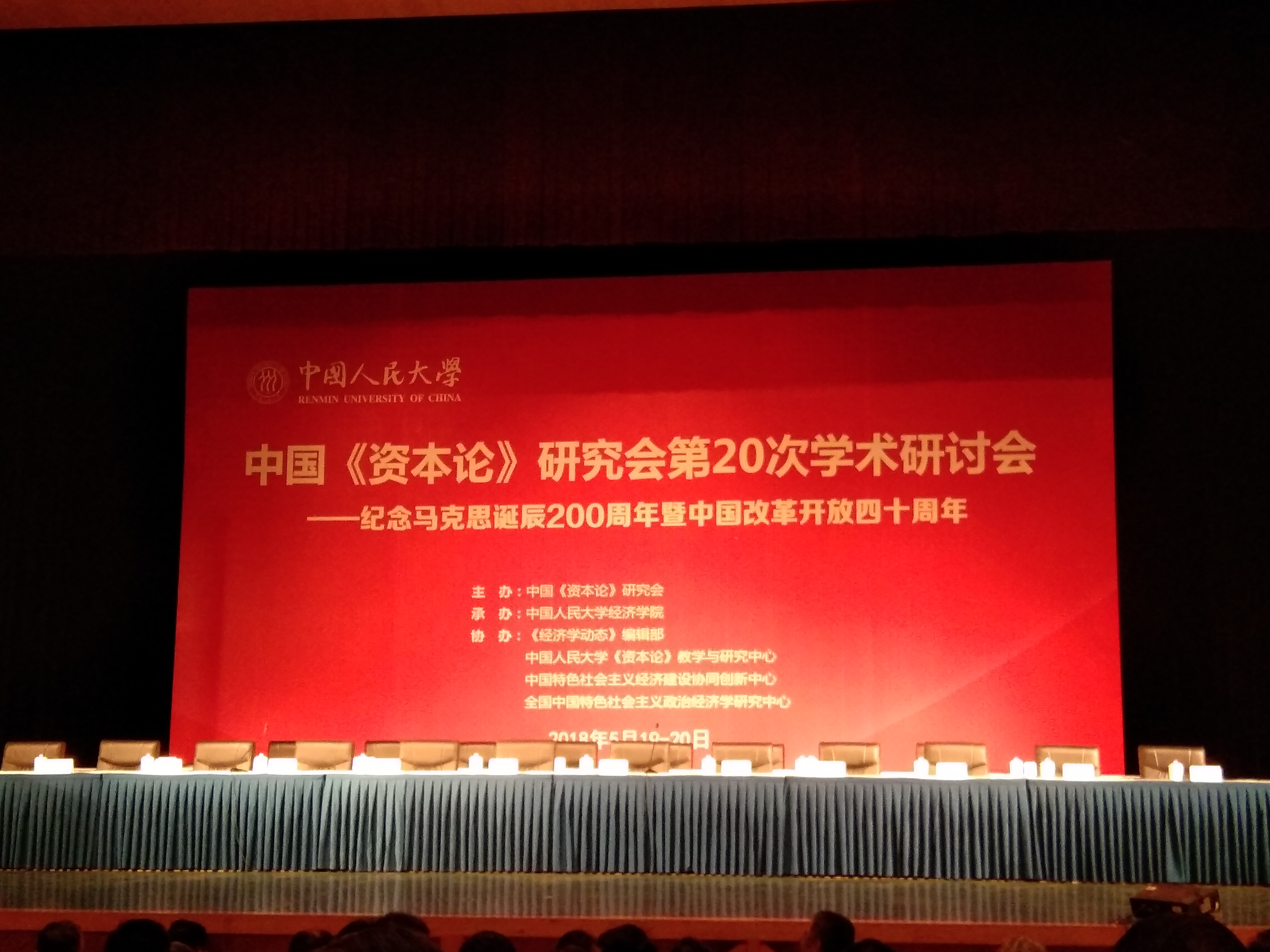 为纪念马克思诞辰200周年及中国改革开放40周年,由《中国资本论》研究会主办,中国人民大学经济学院承办,《经济学动态》编辑部、中国人民大学《资本论》教学与研究中心、中国特色社会主义经济建设协同创新中心、全国中国特色社会主义政治经济学研究中心协办的“中国《资本论》研究会第20次学术研讨会”于 5月19至20日在中国人民大学经济学院举行。来自北京大学、中国社会科学院、武汉大学、英国上市公司365等多所院校的知名专家学者和师生代表参加会议。我院马克思主义基本原理专业硕士王尚君和国外马克思主义专业硕士杨苹苹应邀参会。