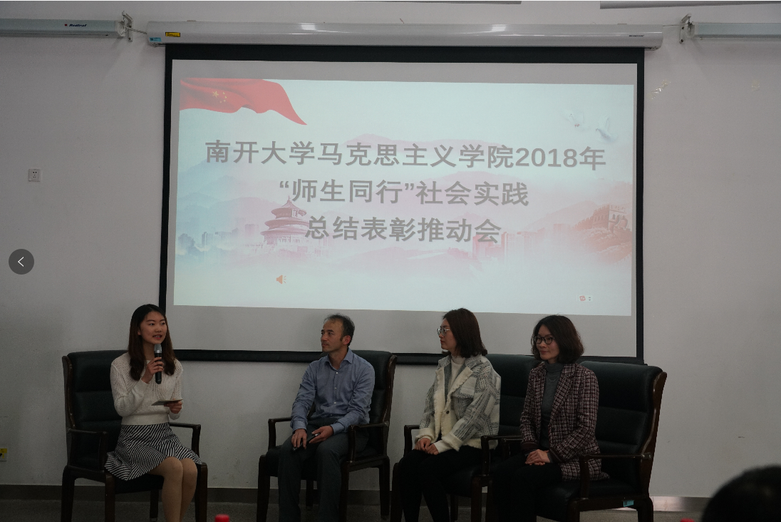 优秀学生代表2016级本科生姚征、2018级博士研究生孙艳美分享了实践经历和体会,通过社会实践坚定理想信念,脚踏实地,努力将爱国之心化为报国之行。盛林、郑文娟、吴淑丽三位老师作为优秀教师代表参与了现场访谈,他们热情分享了“师生同行”社会实践的经验与感受,一方面在同行中增进师生情感,加深对学生了解,另一方面在共学、共研、同讲中,将第一课堂与第二课堂有机融合,将实践地优秀资源转化为育人的生动素材,有利于增强思政课实效性。