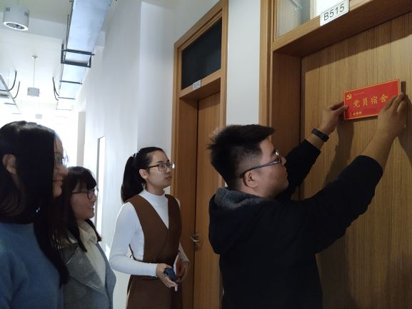 2018级硕士生党支部成员陈田田表示,“党员宿舍”的挂牌,是对学生党员的肯定和期待,更是学生党员的警示牌,给学生党员们上紧了一根“自律”的弦:学生党员更要遵守好各项规章制度,真正发挥模范带头作用,以身作则,与其他同学共同成长。