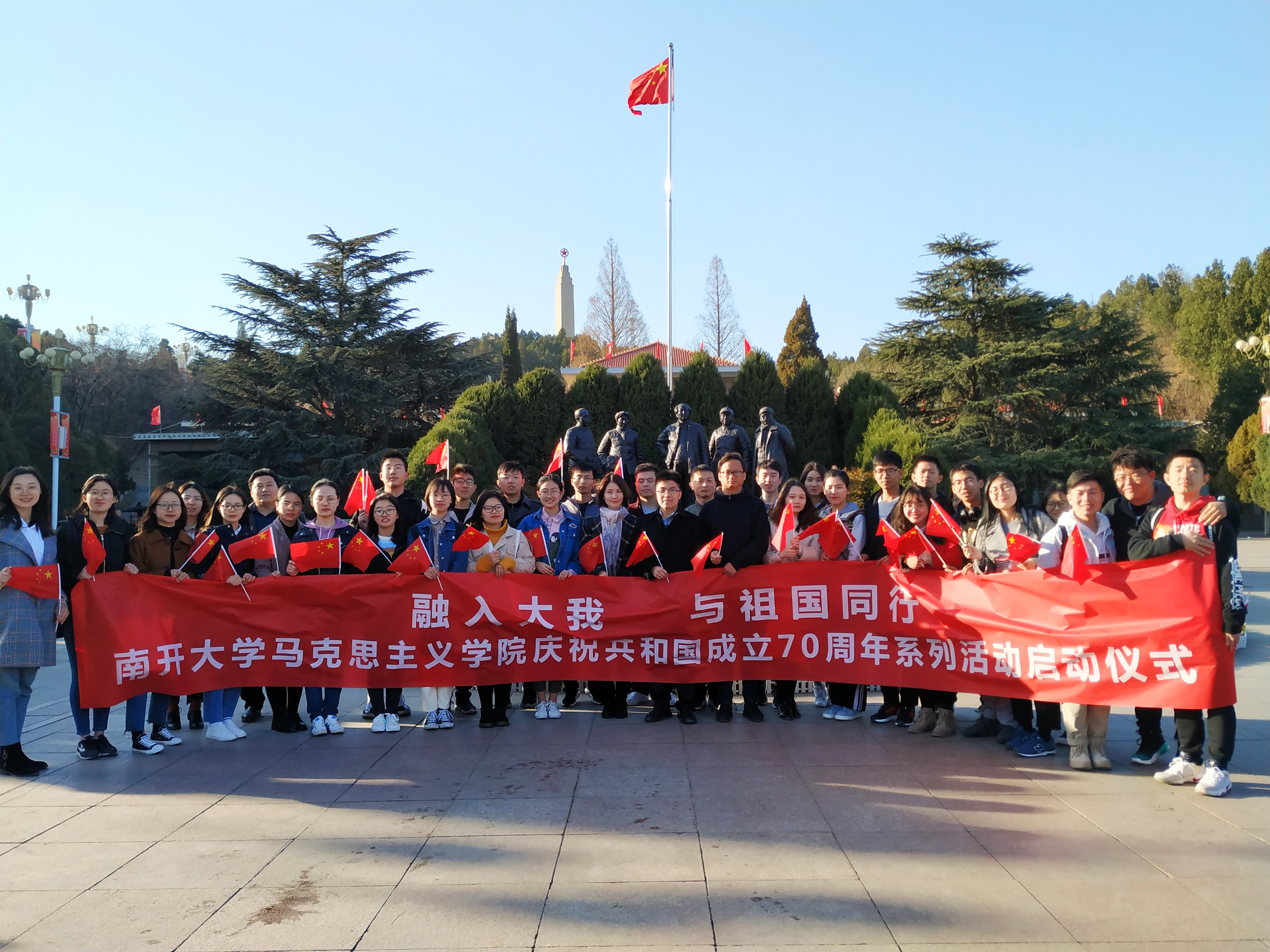 23日,英国365集团“融入大我与祖国同行”迎庆共和国70周年系列主题活动启动仪式在西柏坡纪念馆前广场举行,学生们进行了诗歌朗诵《少年中国说》,“西柏坡精神”主题宣讲等活动,学院“青年教职工发展协会”秘书长郑文娟代表青年教师阐述了对于西柏坡精神的理解和建功新时代的决心,学生代表2018级硕士生王惠惠发出倡议,秉承南开爱国传统,将小我融入大我,将青春奉献祖国。师生合唱《我和我的祖国》的歌声回响在纪念馆广场,吸引了过往游客的目光,纷纷加入到用歌声祝福祖国的行列。