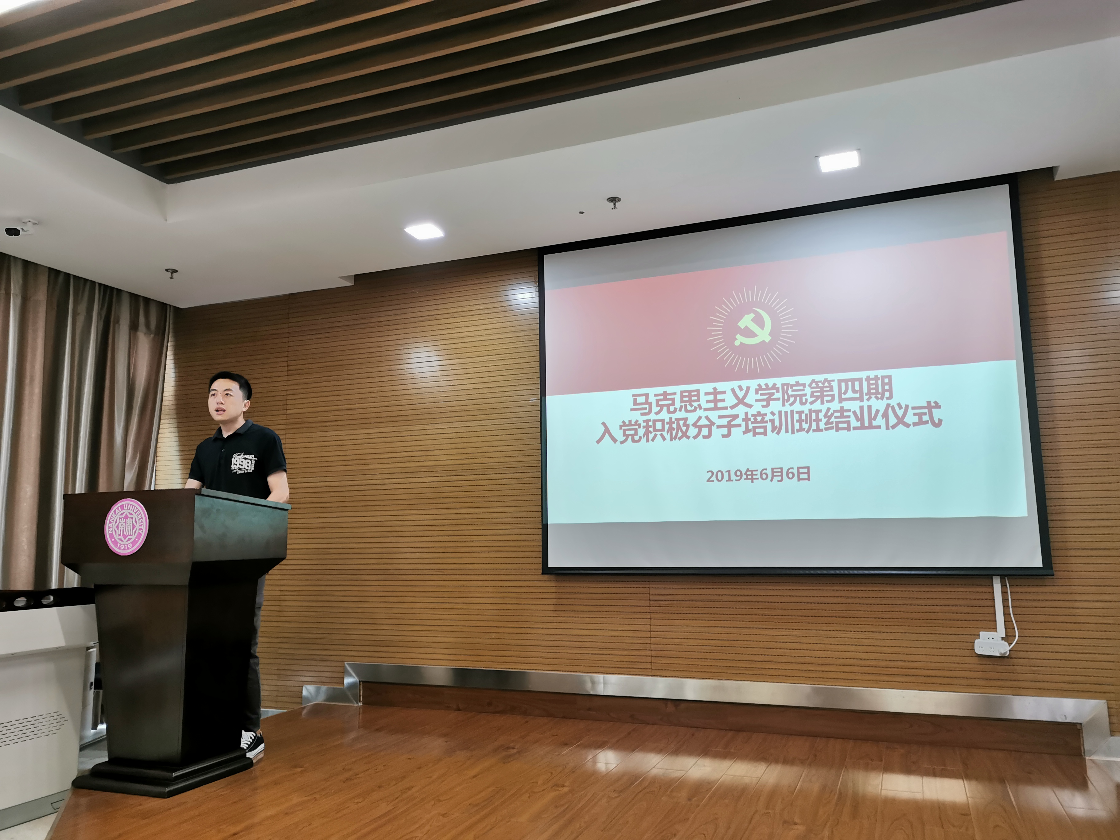 紧接着,殴喜乐宣布第四期入党积极分子培训班66名学员全部顺利通过考核,准予结业,并宣读了优秀学员名单。党校根据出勤考评、总结心得、个人表现、结业考试等方面的综合考量,确定7名优秀学员。优秀学员代表王增沛分享了自己的学习收获和入党动机。