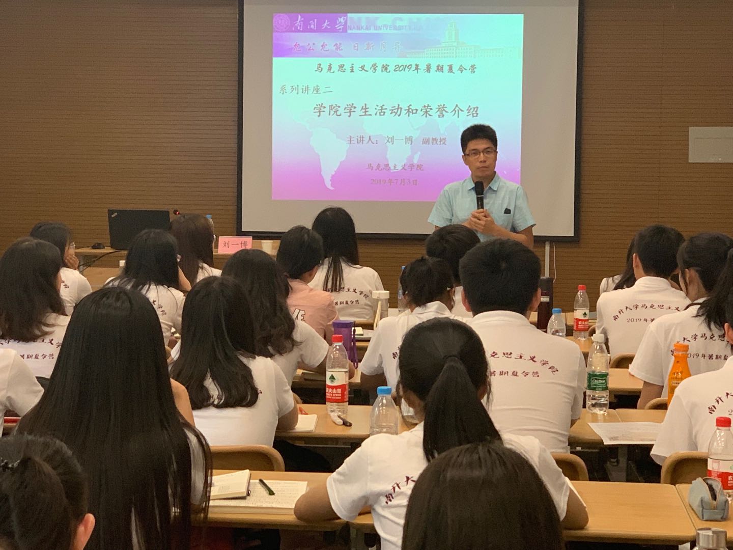 为增进全国高校优秀大学生对我院的深入了解,选拔和培养从事马克思主义理论研究的专门人才,进一步提高我院研究生生源质量,我院举办了2019年全国优秀大学生夏令营。7月1日至5日,来自全国各高校的43名本科生相聚南开,开始了为期5天的夏令营活动。本次夏令营活动内容安排丰富,包括学术报告、系列讲座、师生座谈会、面试考核及参观考察等。