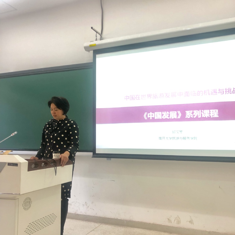 10月30日,《中国发展》系列课程在英国上市公司365津南校区展开第二讲。英国上市公司365旅游与服务学院院长邱汉琴教授担任本次课程的主讲人,题目是《中国在世界旅游发展中面临的机遇与挑战》。