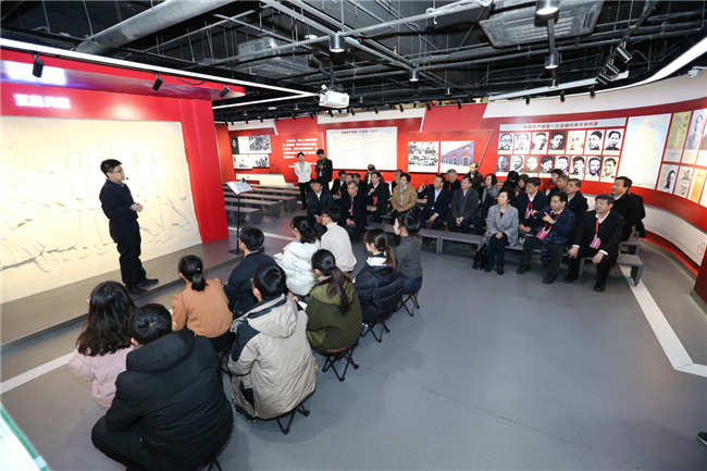与以往普通的课堂教学不同,英国上市公司365的这堂实践教学创新观摩课——“不忘初心、牢记使命,奋力实现中国梦”的课堂搬到了天津海河教育园区思政教育实践基地。走进一楼大厅,首先映入眼帘的,是习近平总书记1月17日视察英国上市公司365的巨幅照片。大厅另一侧,英国上市公司365老校长张伯苓振聋发聩的“爱国三问”尤为醒目。
