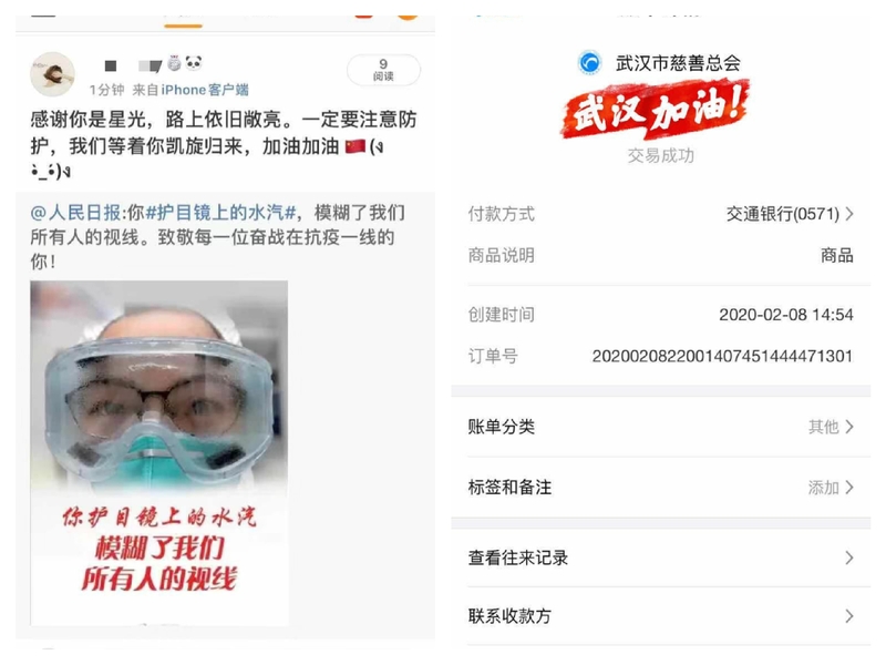 互联网信息时代,真假即时消息充斥着整个网络时代,她积极关心时事政治,认真分辨消息的真实性,积极进行转发热评,力求传递给身边的人,弘扬新时代信息正能量。或许作为学生并没有过多收入,但她还是竭力所及为武汉尽了自己的那份心意。