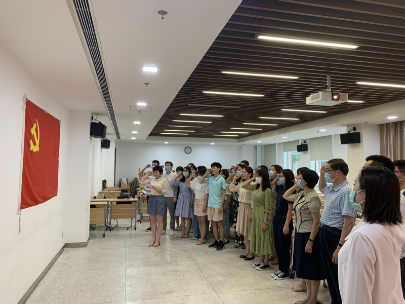 最后,全体毕业生党员面向党旗,重温入党誓词。通过庄严宣誓提醒自己不忘初心,牢记使命,为母校争光,为党旗添彩。
