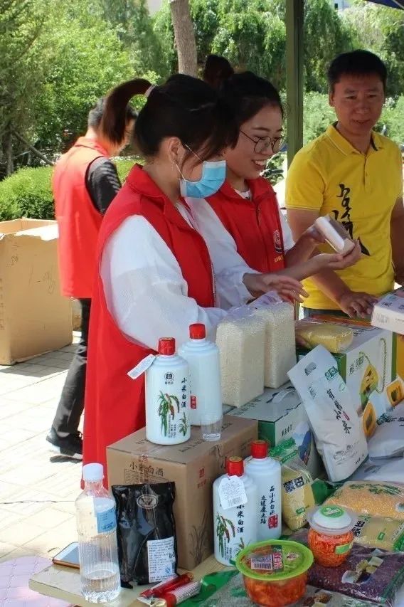 2019级硕士生黎爽和丛婧投身赤峰市团委“助力脱贫攻坚 促进农产品进城”扶贫一线。两位同学主动承担党群服务志愿者驿站线下销售工作,从清点货品、搬运货物、熟悉产品价格,到化身“摊主”售卖、登记订单信息等,对于没有“摆摊”经验的外行“摊主”来说,这些工作确实是一个不小的挑战,但他们没有因此退缩,而是以更加饱满的热情和认真的态度投身到志愿服务中去。最后,在赤峰市共青团所有成员的努力之下,此次扶贫活动共计完成助农交易632单,达成总额11.6万元,“农产品进城推广周”端午专场圆满落幕。