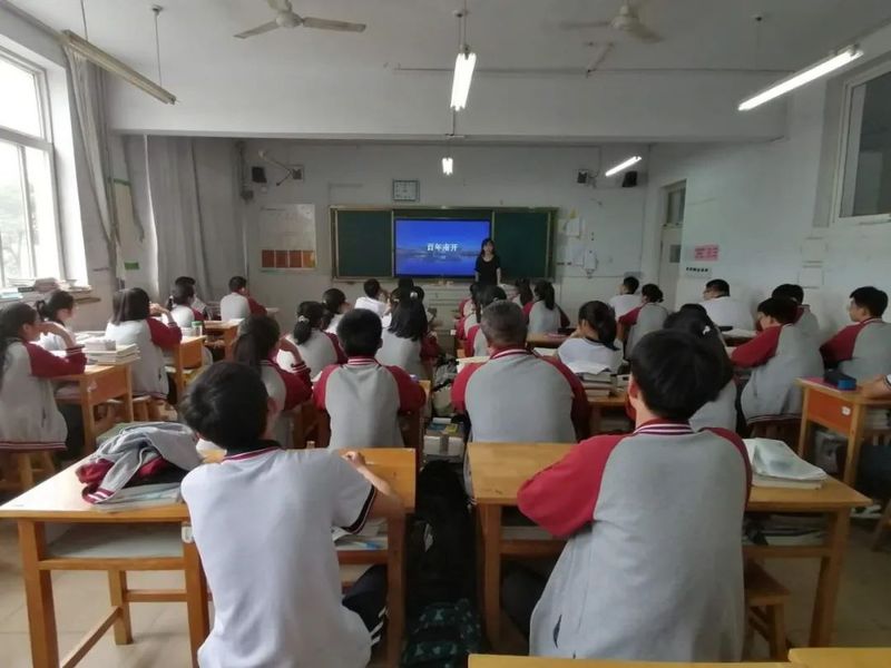 2019级硕士生于蒙蒙走进山东省昌乐一中高二课堂,开展“可爱的国 奋斗的我”青年大学习宣讲活动,她以“惜韶华之时,绘青春之色”为主题,讲述百年南开、抗疫故事以及讨论交流。