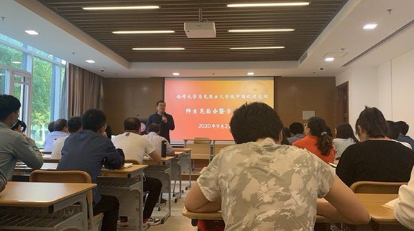 赵美玲教授对到会的研究部老师作了介绍,并为同学们详细讲解了马克思主义中国化研究部的基本情况,包括研究部的历史、师资力量和学术成果等。在导师寄语部分,纪亚光教授首先对研究部全体2020级硕博研究生实现人生理想表示祝贺,并对未来的研究生生活提出三点期望:一是明确发展目标,把注意力放在学习、求知、成长上,不断提升自己的学识水平与创新能力;二是调整好心态,积极面对学业压力、人才聚集压力,树立向身边优秀的老师、同学学习的态度,在乐群之中实现自我超越;三是养成良好的学术习惯,使读书、思考、写作成为日常生活的一部分,以科学的态度面对研究生生涯,取得学术上的突破。