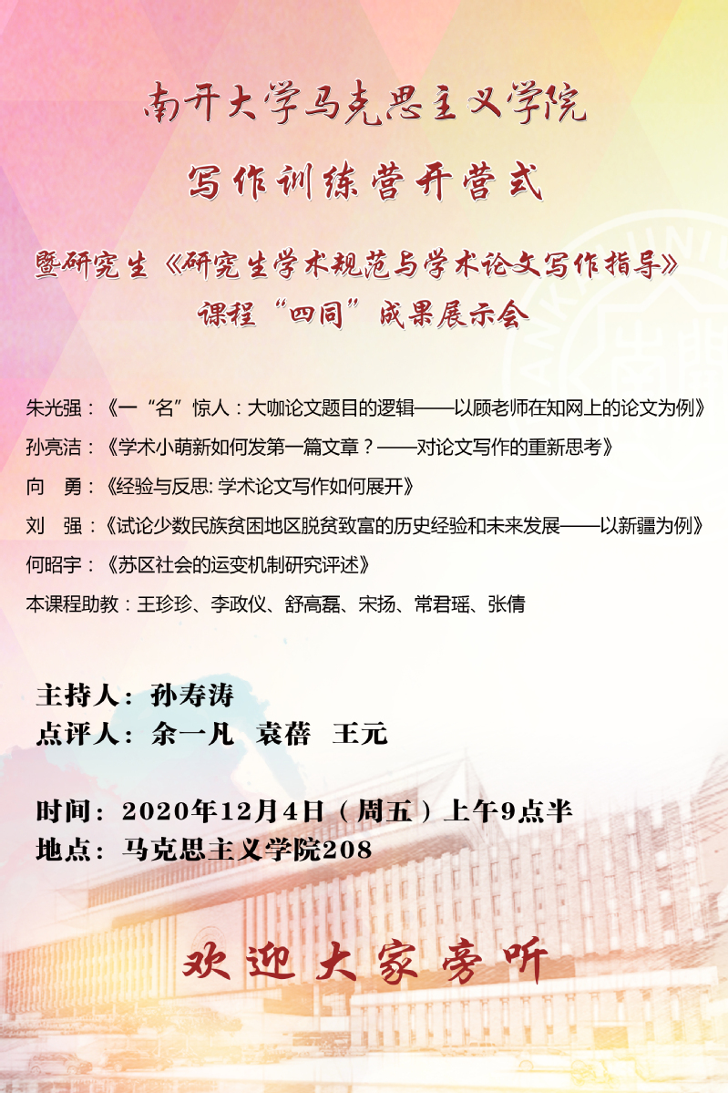 学院写作训练营开营式暨研究生《研究生学术规范与学术论文写作指导》 课程“四同”成果展示会
