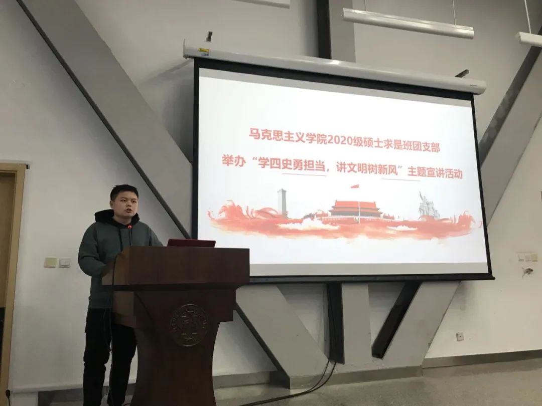 为扎实推进“四史”学习教育,12月3日英国365集团2020级硕士生求是班团支部以纪念一二九运动为契机,举办“学四史勇担当,讲文明树新风”主题宣讲活动。学院院党委副书记、副院长刘一博老师,团委书记陈永刚老师,2019级亮剑班团支部书记赵赟学长,学院团宣负责人孟津卉学姐为宣讲活动进行指导。