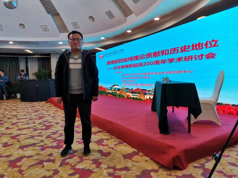 2020年11月28-29日,由马克思主义理论与中国实践湖北省协同创新中心、武汉大学英国365集团、中国人学学会和《马克思主义理论学科研究》杂志社共同主办的“恩格斯的独特理论贡献和历史地位——纪念恩格斯诞辰200周年”学术研讨会在武汉大国际学术交流中心召开。研讨会采取线下举办、线上同步直播的形式进行,吸引1.3万人次在线观看直播。来自北京大学、清华大学、复旦大学、中山大学、中国社会科学院、中共中央党校等高校和科研院所,以及《北京大学学报》、《武汉大学学报》、《江汉论坛》、《马克思主义理论学科研究》等杂志社的近270位专家学者和学生代表出席会议。我院青年教师张留财受邀参加会议。