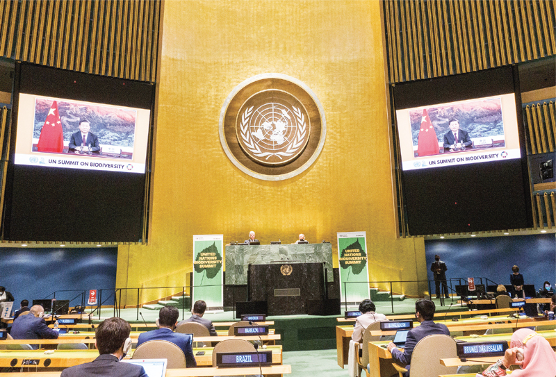 2020年9月30日,国家主席习近平在联合国生物多样性峰会上通过视频发表重要讲话。 新华社发