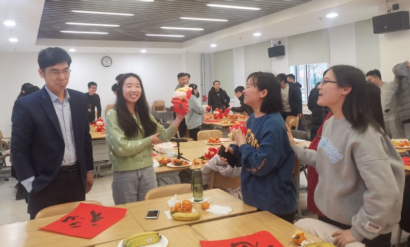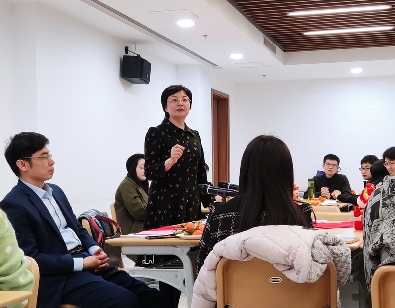 付洪总结到,学院党委高度重视留校学生的安全和生活情况,院领导班子自发捐款为留校学生购买水果、牛奶等慰问品,希望大家能够在校安心过年。同时希望留校学生特别是毕业生能够利用好假期时间,做好学习计划,为顺利毕业打下坚实基础。最后,她代表学院党委祝全体留校学生新年快乐、阖家幸福。