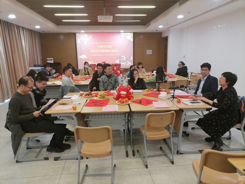 刘凤义为留校师生致以新春问候。他讲到,马院师生主动选择留校过年并严格遵守学校疫情防控相关规定,是响应国家“就地过年”号召,体现了马院师生的高度自觉性和责任感,并祝福大家度过一个平安祥和的春节。