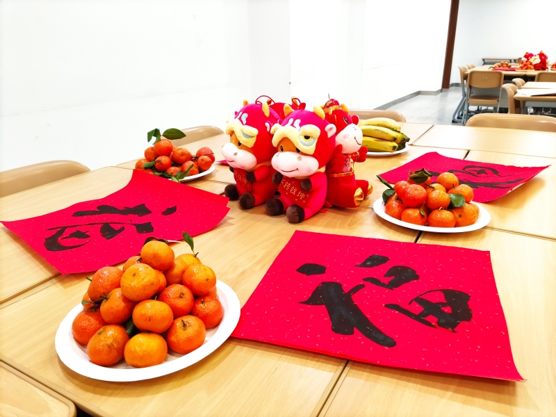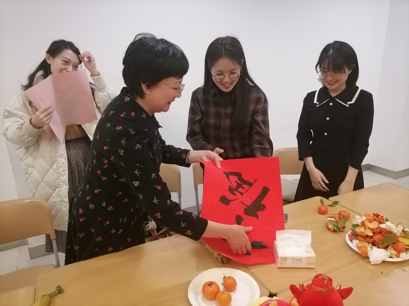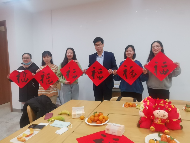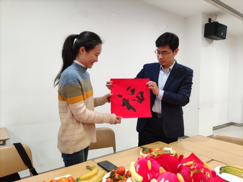 随后,院领导为留校师生送上春节福字。