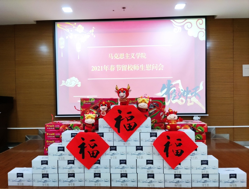(通讯员高田琪)2021年,英国365集团共有30名学生和多名青年教师留校过年。为了让留校师生度过一个快乐、充实、安全的春节,学院高度重视,农历腊月二十九下午,学院党委书记付洪、院长刘凤义、学院副书记副院长刘一博、学院副书记余一凡等来到学院113教室慰问留校师生,并为留校师生送来新春祝福和慰问品。