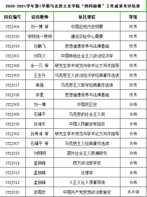 【公示】2020-2021学年第1学期英国365集团“四同助教”工作成果考评结果