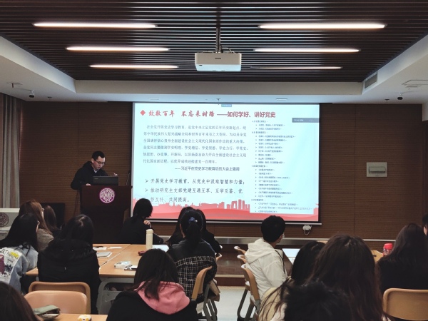 为庆祝中国共产党成立100周年,贯彻中共中央印发的《关于在全党开展党史学习教育的通知》(以下简称《通知》)重要精神,深入开展对全体党员的党史教育,将党史学习入脑入心,外化于行。3月20日下午,我院2019级硕士生星火班党支部与生命科学学院津南校区研究生党支部在学院楼113室开展主题为“致敬百年,不忘来时路”的联合党日活动,部分入党积极分子线上参会,学院孙海东老师进行现场指导。活动由2019级硕士生星火班党支部组织委员刘祯岩主持。