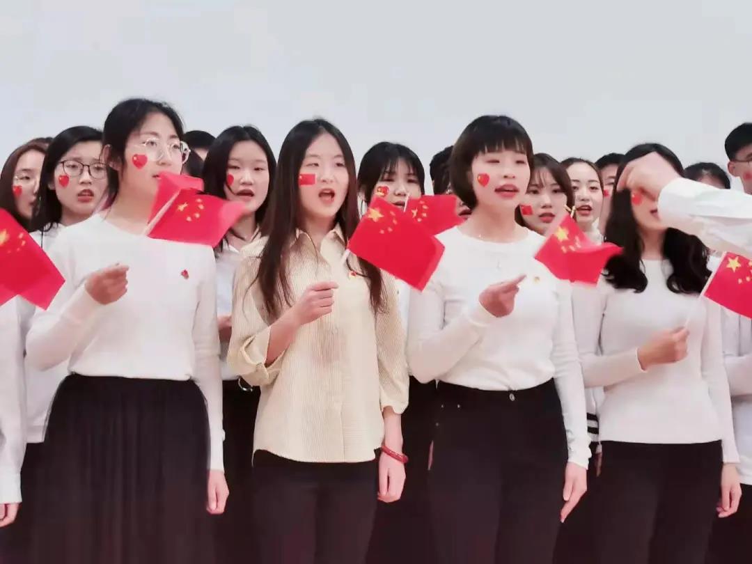紧接着的是2019级本科生行周班演唱的《爱我中华》,由辛雅雯同学指挥,刘芳竹同学领唱。五十六个民族血脉相连,五十六族兄妹携手并肩。在每个炎黄子孙的心中,都有一个强烈震撼的声音:爱我中华!2019级本科生行周班是一个包含了五个民族同学的家庭,今天的演唱中他们身着各色民族服饰,展现了中华民族大繁荣大团结的美好现实,并用歌声献礼建党百年,表白伟大祖国!
