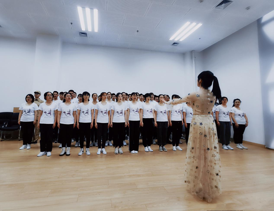 接下来是于硕指挥,2020级硕士生新民班演唱的《我的中国心》,张明敏原唱的《我的中国心》是一首广为传唱的爱国歌曲,旋律起伏较大,情绪逐渐高涨,酣畅淋漓地抒发了炎黄子孙对祖国锦绣山河的无限热爱。这一次,新民班重温经典,旨在唱出万千中华儿女的爱国心,引发各位青年人勇担时代使命的责任感。