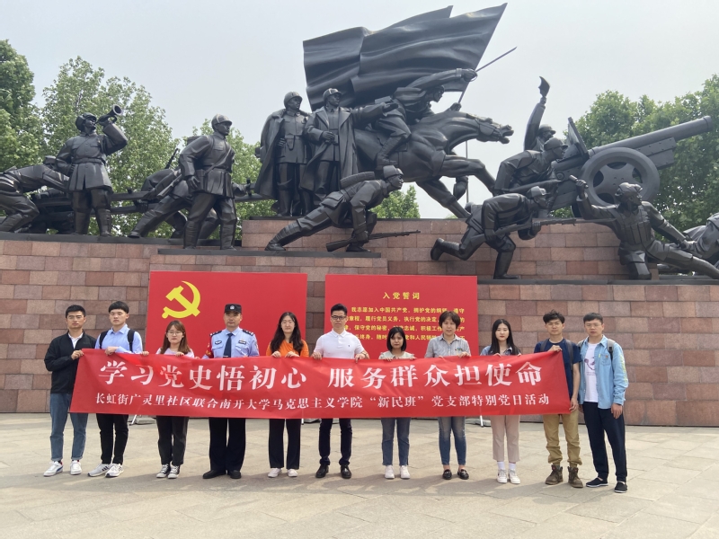 为迎接建党一百周年,贯彻落实习近平总书记在党史学习教育动员大会上的重要讲话精神,切实提高理论学习实效性,5月20日,学院2020级硕士生新民班党支部联合南开区广灵里社区党委共同开展“学习党史悟初心服务群众担使命”主题党日活动,邀请区人大代表沈爱民、公安南开分局长虹派出所民警迟喜政,长虹街执法队干部常乐面对面交流,广灵里社区党委干部董旭东、刘盼等同志出席活动。