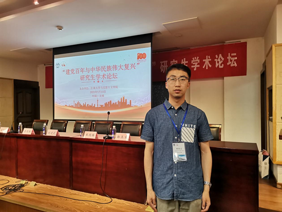 下午的两场分论坛分别以“人间正道:马克思主义的理论与信仰”与“百年征程:中国共产党的奋斗与成就”为核心议题展开研讨。分论坛一由扬州大学张林忆同学主持,由我院陈永杰教授进行点评。我院博士研究生刘云杉同学在其中进行了“真实的解放”到“解放的真实”:理想自主性政治哲学与中国共产党的百年历程的主题发言。