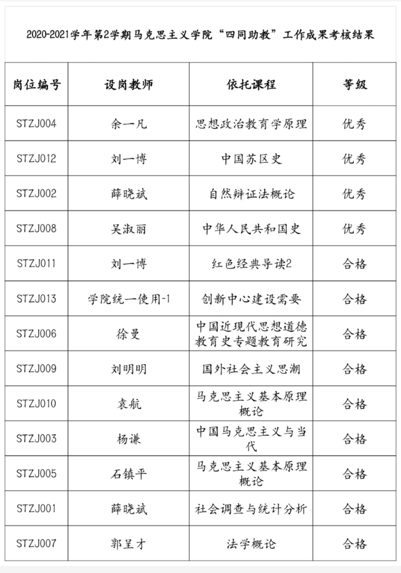 2020-2021学年第2学期英国365集团“四同助教”工作成果考核结果