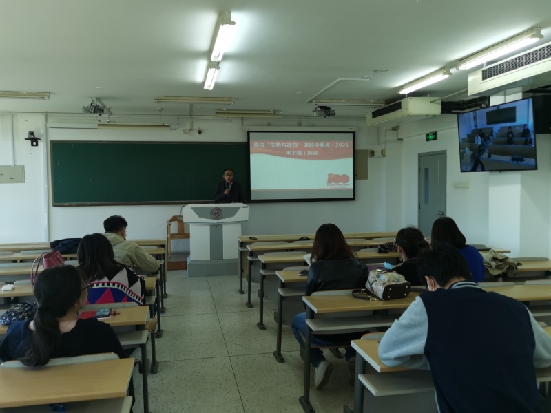 盛林教授强调本学期“形势与政策”课要立足建党百年的重要背景,深入阐释中国共产党为什么能、马克思主义为什么行、中国特色社会主义为什么好,引导青年大学生以实现中华民族伟大复兴为己任,增强做中国人的志气、骨气、底气。盛林对教育部办公厅印发的《高校“形势与政策”课教学要点(2021年下辑)》进行了精神解读,强调本学期“形势与政策”课专题设置要结合通知规定的十个具体方向,深入阐释习近平新时代中国特色社会主义思想特别是习近平总书记最新重要讲话精神,全面贯彻落实党的十九大和十九届二中、三中、四中、五中、六中全会精神,紧紧围绕学习贯彻习近平总书记“七一”重要讲话、加快构建新发展格局、实现科技自立自强、构建人与自然生命共同体。