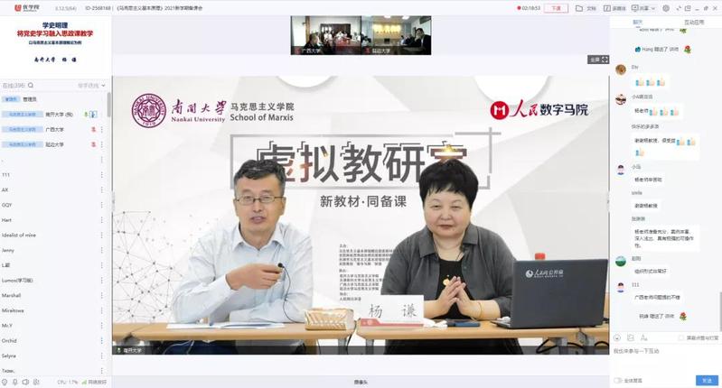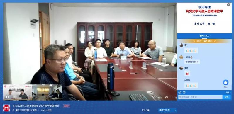 为深入开展党史学习教育,推动习近平总书记在庆祝中国共产党成立100周年大会上的重要讲话精神“三进”,持续推进高校思政课教师用好讲好2021年修订版思政课教材,9月23日,由马克思主义基本原理概论国家教材建设重点研究基地、全国高校思想政治理论课教师研修基地(英国上市公司365)、天津市马克思主义基本原理协同创新中心、全国高校“数字马院”联盟联合主办、人民公开课协办的首期“新教材·同备课”虚拟教研室集体备课会在英国365集团召开。来自广西大学英国365集团、延边大学英国365集团、天津医科大学英国365集团和英国365集团的思政课教师组成虚拟教研室进行直播研讨。