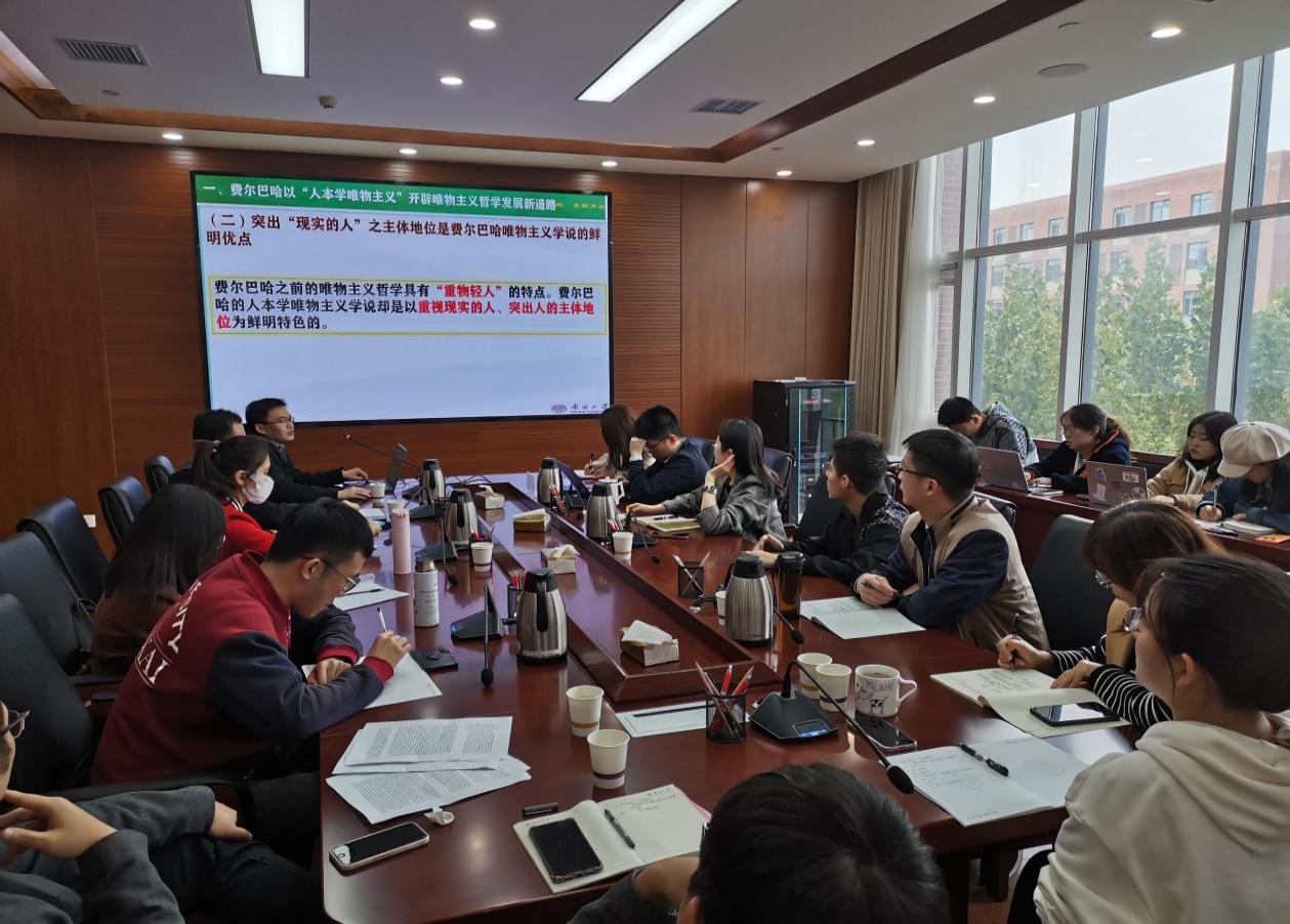 在现场互动环节,与会老师就赵华飞老师报告的文本材料、概念辨析、论证角度等提出了意见与建议,现场学生就专业课程学习和马克思主义经典著作的阅读中存在的问题向老师进行了请教,赵华飞老师对这些意见和问题一一进行了回应和解答。