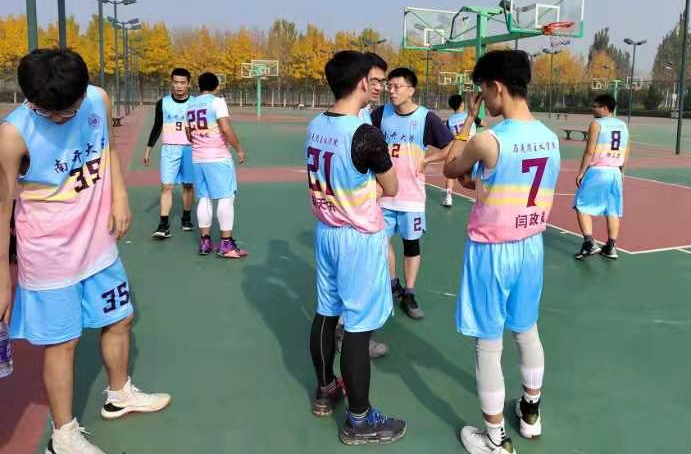 首先是11月4日与旅游学院的激战。中午十二点,太阳透过薄雾洒在篮球场上,反射的光让人睁不开眼。尽管有许多队员是刚刚下课赶来,但整支队伍已经蓄势待发。“磨刀不误砍柴工”,领队张嘉林在赛前组织队员们以跑篮的方式热身。“Bee~”在裁判一声哨响下,所有人的目光都集中在了球场中圈,马院派出3号队员林凯歌跳球,以毫厘之差错失球权,但这并不影响球队士气与节奏,马院人始终相信厚积薄发的力量,不在乎一城一池的得失才能笑到最后!比赛上半场,我院接连得分。下半场,旅院追分势头迅猛,接连抛投得分,我院同样还以颜色,比分始终保持胶着状态。随着一声哨响,比赛结束,我院以寥寥数分之差惜败旅院。赛后,队员们并没有气馁,而是打开格局,主动留下来互相鼓励总结,并对下一场比赛进行部署规划!