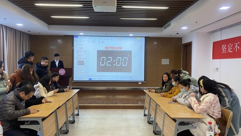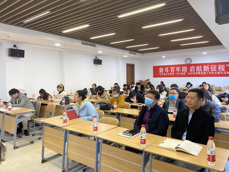 (通讯员:刘鑫)为庆祝中国共产党成立100周年,深刻学习领会七一讲话精神和党的十九届六中全会精神,提高全院师生党员自身政治理论素养,进一步提升基层党组织的战斗力和凝聚力,12月19日,学院党委举办2021年“学习强国”知识竞赛决赛暨党建工作风采展示活动。活动由学院党建事务中心承办,学院党委副书记兼副院长王友江、党委专职组织员江毅、团委副书记高田琪及全体参赛师生代表参加活动。