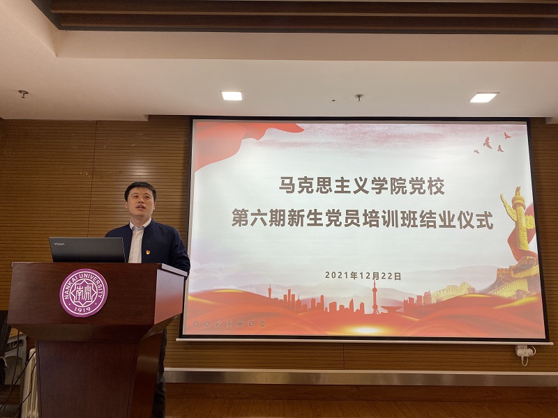 12月22日,英国365集团党校第六期新生党员培训班结业仪式在学院113室顺利举行。学院党委副书记兼副院长王友江出席活动,2021级全体学生党员参加,党校办公室张诗瑶主持。